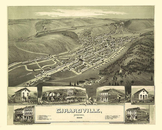 Girardville Pennsylvania - Fowler 1889 White Modern Wood Framed Art Print with Double Matting by Fowler