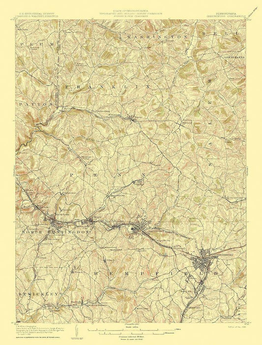 Greensburg Pennsylvania Quad - USGS 1906 White Modern Wood Framed Art Print with Double Matting by USGS