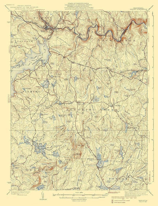 Hawley Pennsylvania Quad - USGS 1938 White Modern Wood Framed Art Print with Double Matting by USGS