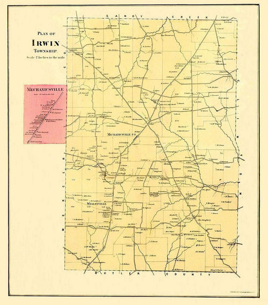 Irwin Pennsylvania Landowner - Mayer 1865 White Modern Wood Framed Art Print with Double Matting by Mayer