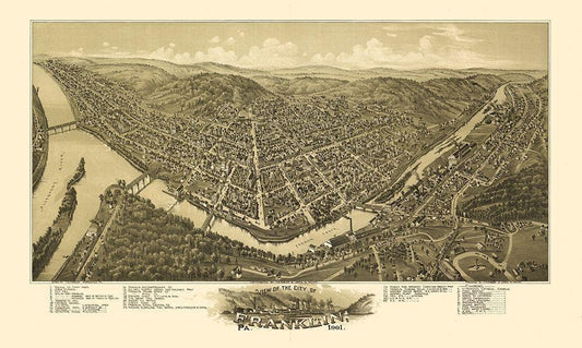 Franklin Pennsylvania - Fowler 1901 White Modern Wood Framed Art Print with Double Matting by Fowler