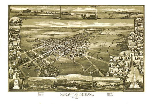 Gettysburg Pennsylvania - Downs 1888 White Modern Wood Framed Art Print with Double Matting by Downs