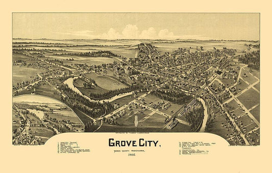 Grove City Pennsylvania - Fowler 1901 White Modern Wood Framed Art Print with Double Matting by Fowler