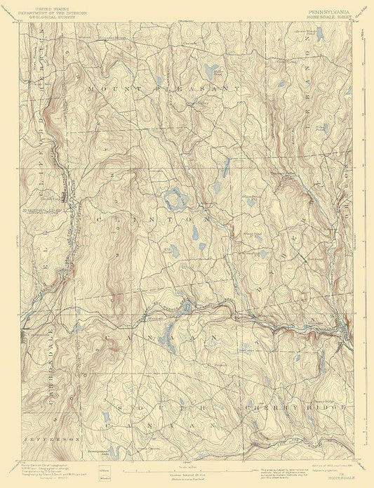 Honesdale Pennsylvania Quad - USGS 1892 White Modern Wood Framed Art Print with Double Matting by USGS