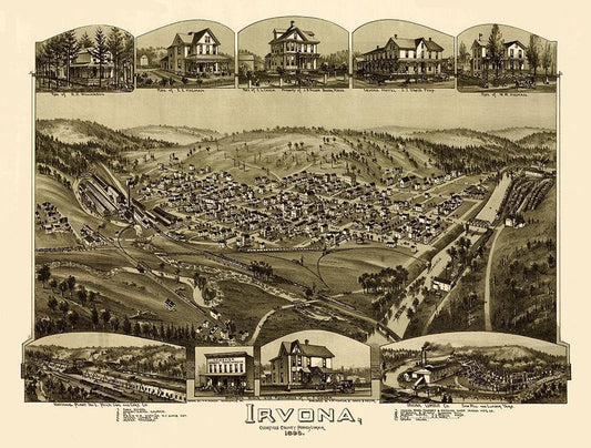 Irvona Pennsylvania - Fowler 1895 White Modern Wood Framed Art Print with Double Matting by Fowler