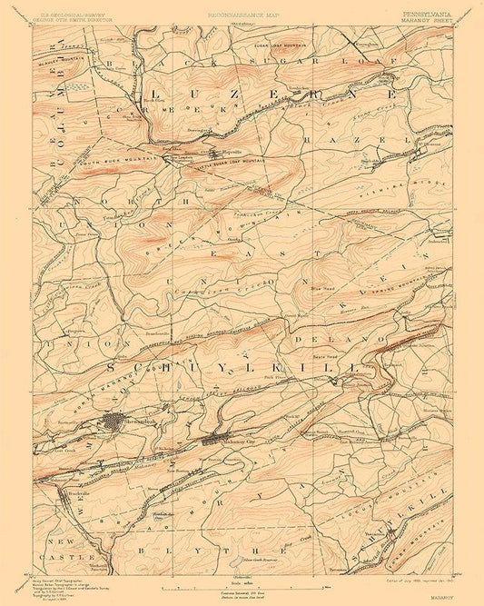 Mahanoy Pennsylvania Sheet - USGS 1893 White Modern Wood Framed Art Print with Double Matting by USGS