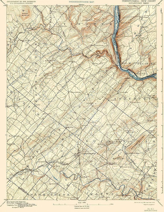 Doylestown Pennsylvania New Jersey Sheet White Modern Wood Framed Art Print with Double Matting by USGS