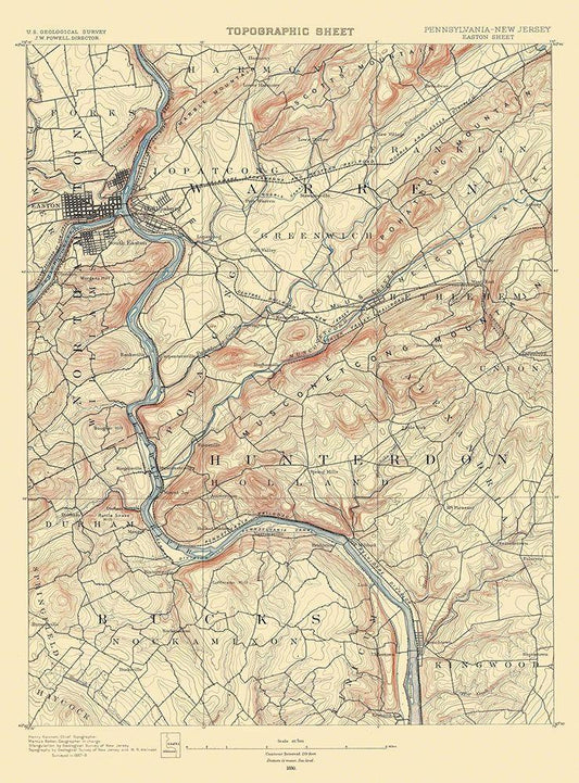 Easton Pennsylvania New Jersey Sheet - USGS 1890 White Modern Wood Framed Art Print with Double Matting by USGS