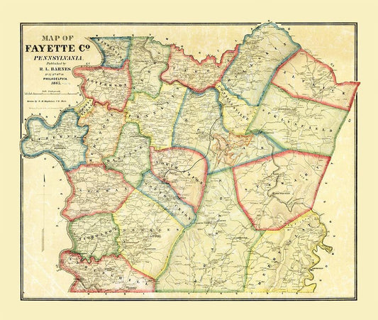 Fayette County Pennsylvania - 1858 White Modern Wood Framed Art Print with Double Matting by Unknown