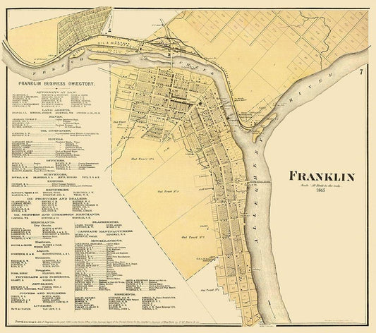 Franklin Pennsylvania - Mayer 1865 White Modern Wood Framed Art Print with Double Matting by Mayer