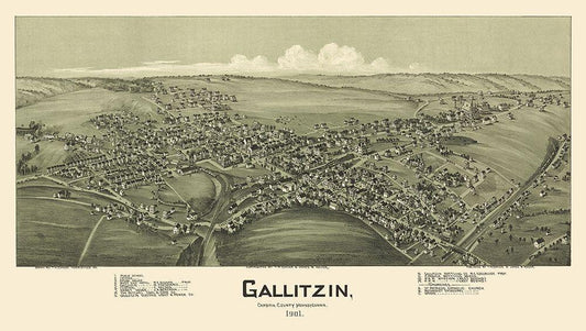 Gallitzin Pennsylvania - Fowler 1901 White Modern Wood Framed Art Print with Double Matting by Fowler
