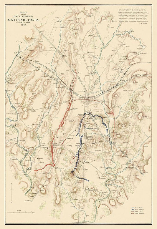 Gettysburg Battlefield Pennsylvania - Warren 1863 White Modern Wood Framed Art Print with Double Matting by Warren