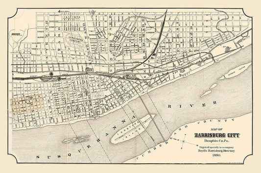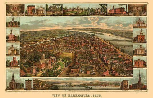Harrisburg Pennsylvania - Boyd 1880 White Modern Wood Framed Art Print with Double Matting by Boyd