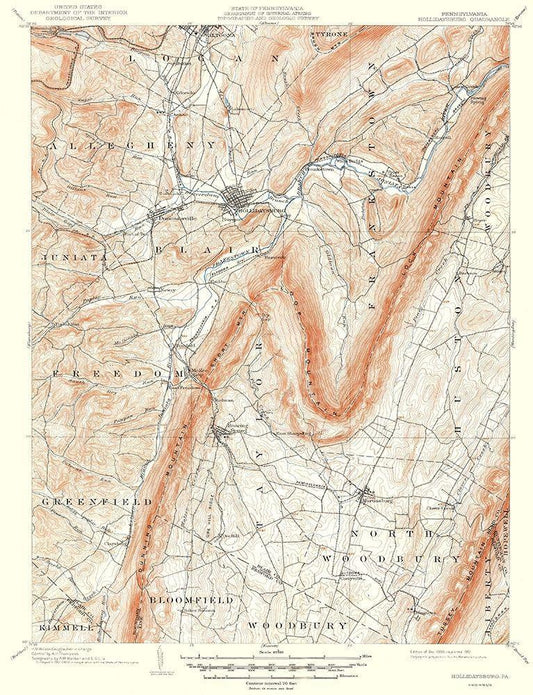 Hollidaysburg Pennsylvania Quad - USGS 1903 White Modern Wood Framed Art Print with Double Matting by USGS