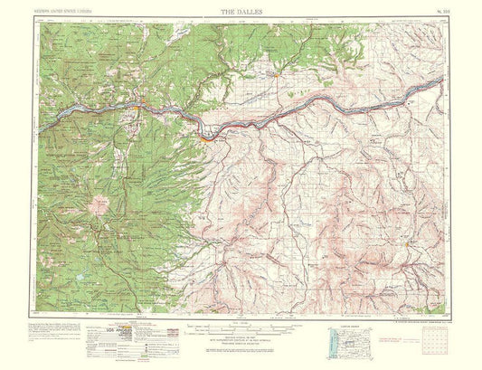 Dalles Oregon Quad - USGS 1965 White Modern Wood Framed Art Print with Double Matting by USGS