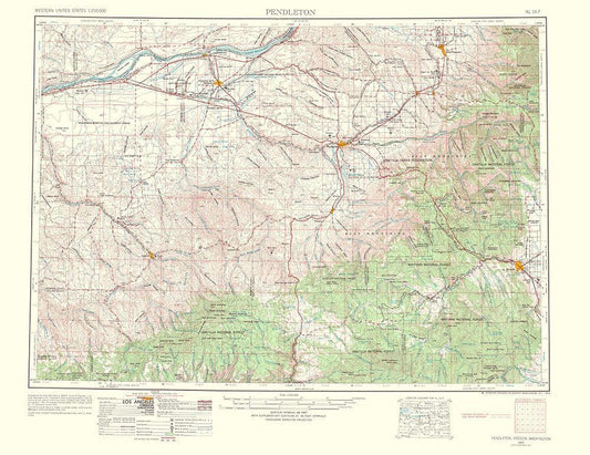Pendleton Oregon Washington Quad - USGS 1964 White Modern Wood Framed Art Print with Double Matting by USGS