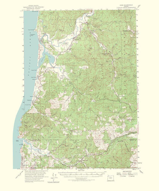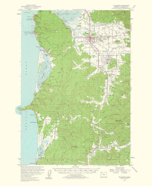 Tillamook Oregon Quad - USGS 1963 White Modern Wood Framed Art Print with Double Matting by USGS