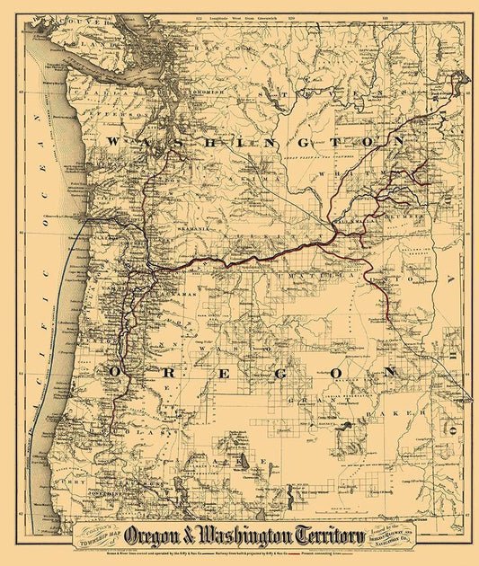 Oregon, Washington - Colton 1880 White Modern Wood Framed Art Print with Double Matting by Colton