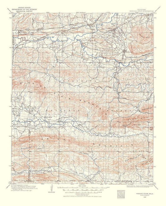 Winding Stair Oklahoma Quad - USGS 1960 White Modern Wood Framed Art Print with Double Matting by USGS