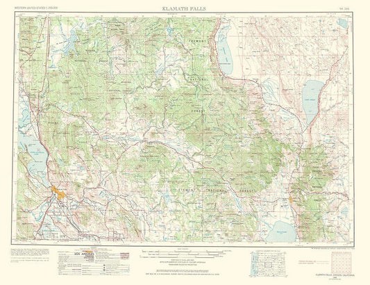 Klamath Falls Oregon California Quad - USGS 1968 White Modern Wood Framed Art Print with Double Matting by USGS