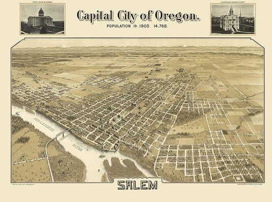 Salem Oregon - Koppe 1905 White Modern Wood Framed Art Print with Double Matting by Koppe
