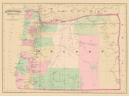 Oregon - Asher and Adams 1874 White Modern Wood Framed Art Print with Double Matting by Asher