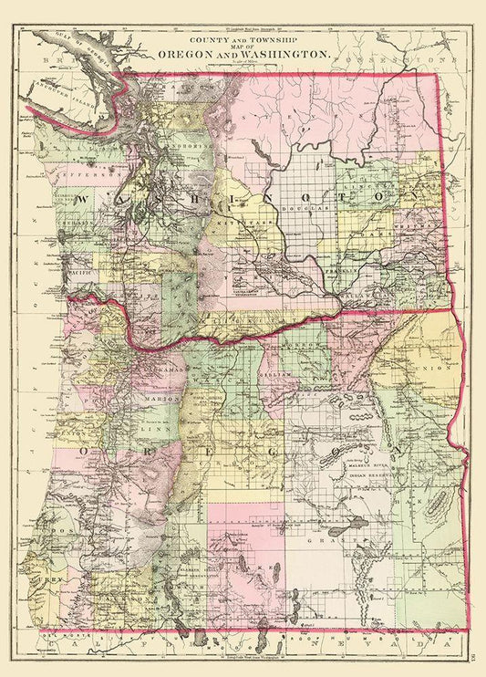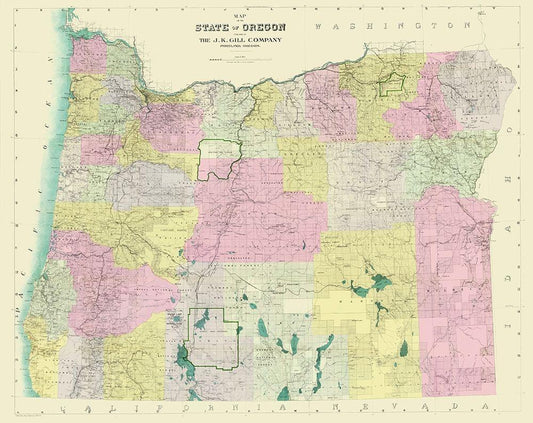 Oregon, Washington - Bradley 1887 White Modern Wood Framed Art Print with Double Matting by Bradley