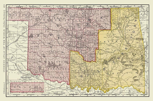 Oklahoma Indian Territory - Cram 1875 White Modern Wood Framed Art Print with Double Matting by Cram