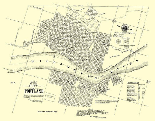 Portland Oregon Landowner - Burrage 1866 White Modern Wood Framed Art Print with Double Matting by Burrage
