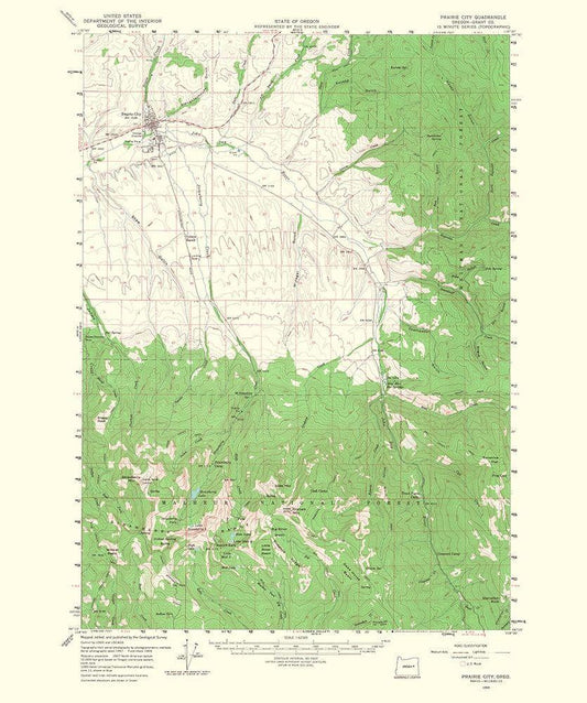Prairie City Oregon Quad - USGS 1968 White Modern Wood Framed Art Print with Double Matting by USGS