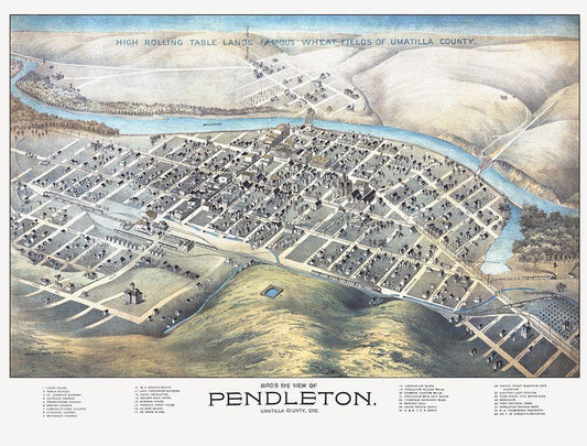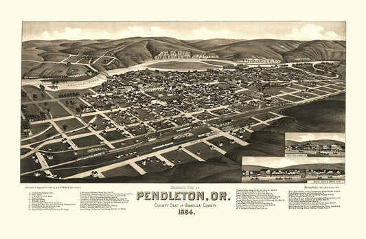 Pendleton Oregon - Dakin 1890 White Modern Wood Framed Art Print with Double Matting by Dakin