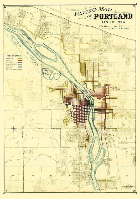 Portland Oregon Paving - Schmidt 1894 White Modern Wood Framed Art Print with Double Matting by Schmidt