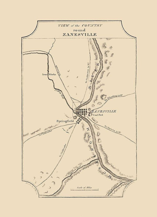 Zanesville Ohio - Melish 1812 White Modern Wood Framed Art Print with Double Matting by Melish