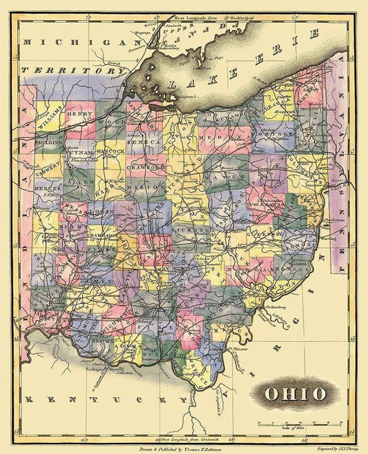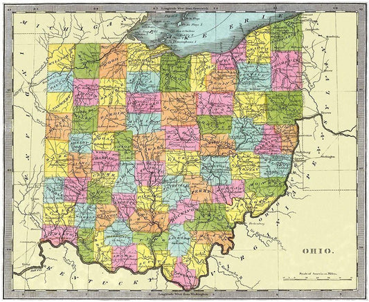 Ohio - Lucas 1823 White Modern Wood Framed Art Print with Double Matting by Lucas