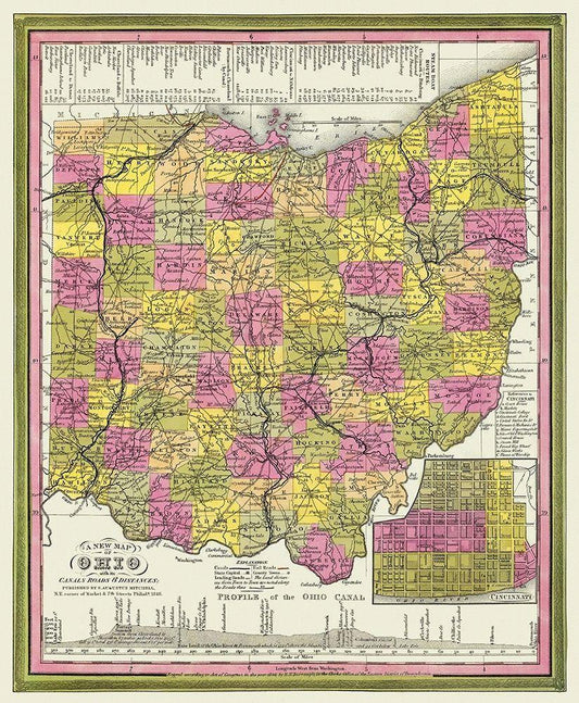 Ohio with Cincinnati Ohio - Mitchell 1846 White Modern Wood Framed Art Print with Double Matting by Mitchell