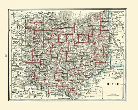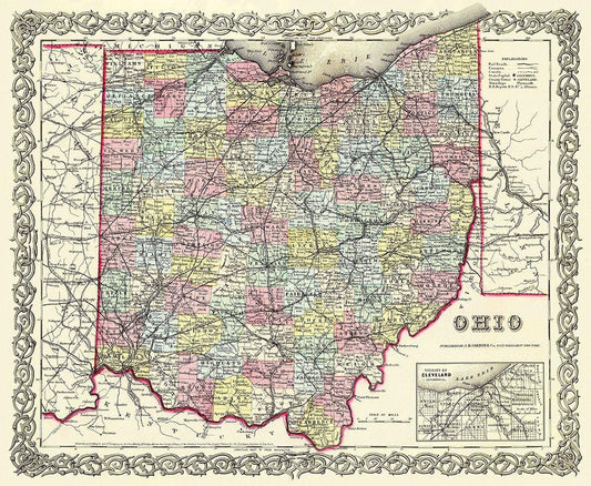 Ohio - Cram 1886 White Modern Wood Framed Art Print with Double Matting by Cram