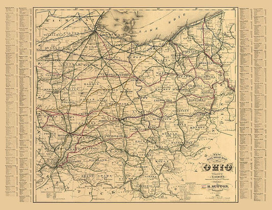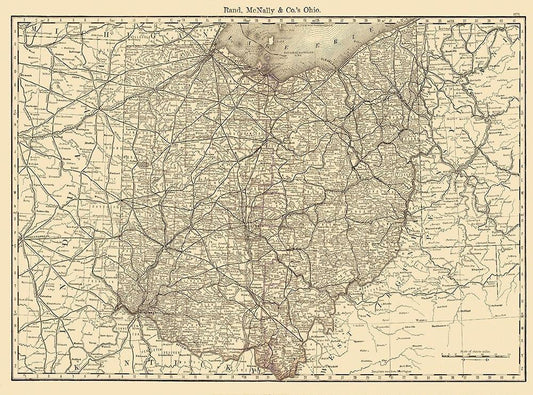 Ohio - Rand McNally 1879 White Modern Wood Framed Art Print with Double Matting by Rand McNally