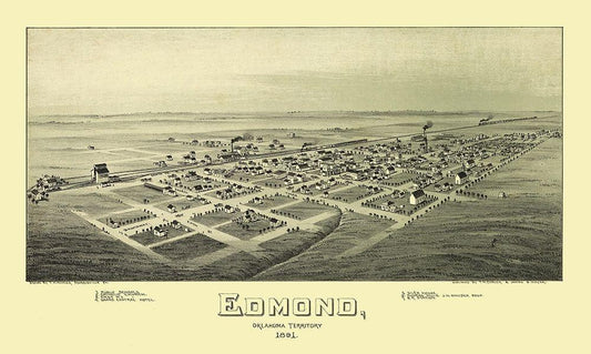 Edmond Oklahoma - Fowler 1891 White Modern Wood Framed Art Print with Double Matting by Fowler