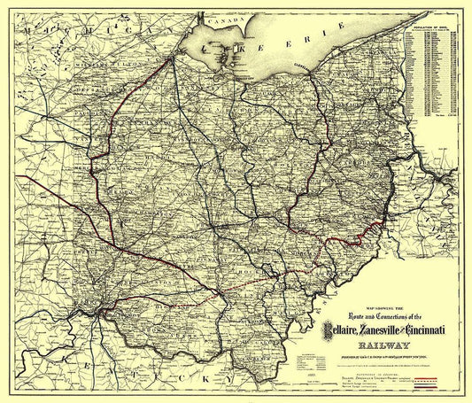 Bellaire, Zanesville and Cincinatti Railway 1883 White Modern Wood Framed Art Print with Double Matting by Colton