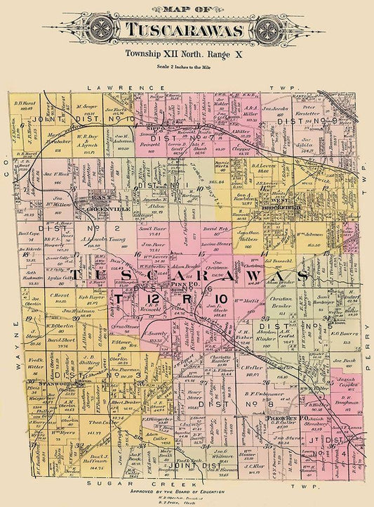 Tuscarawas Ohio Landowner - Lawrence 1896 White Modern Wood Framed Art Print with Double Matting by Lawrence