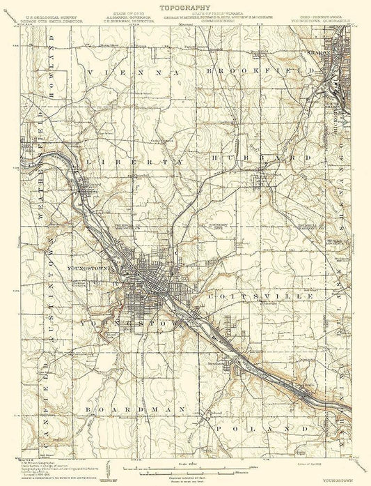 Youngstown Pennsylvania Ohio Quad - USGS 1908 White Modern Wood Framed Art Print with Double Matting by USGS