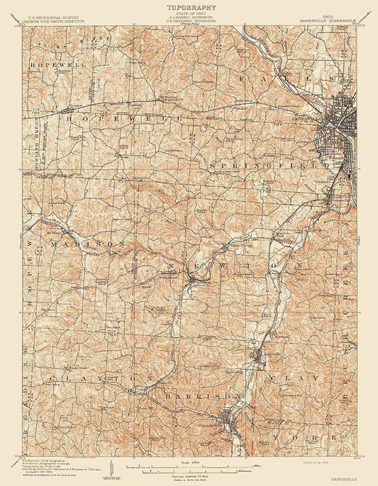 Zanesville Ohio Quad - USGS 1910 White Modern Wood Framed Art Print with Double Matting by USGS