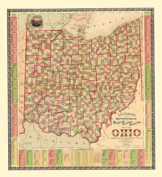 Ohio Railroad Distances and Townships 1873 White Modern Wood Framed Art Print with Double Matting by Bridgman