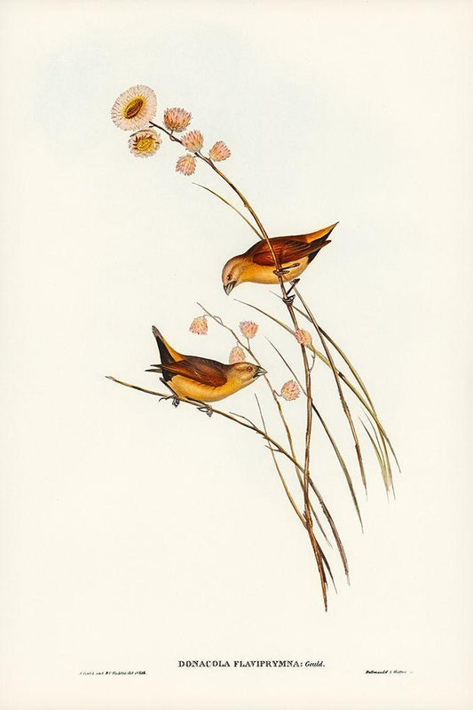 Yellow-rumped Finch-Donacola flaviprymna White Modern Wood Framed Art Print with Double Matting by Gould, John