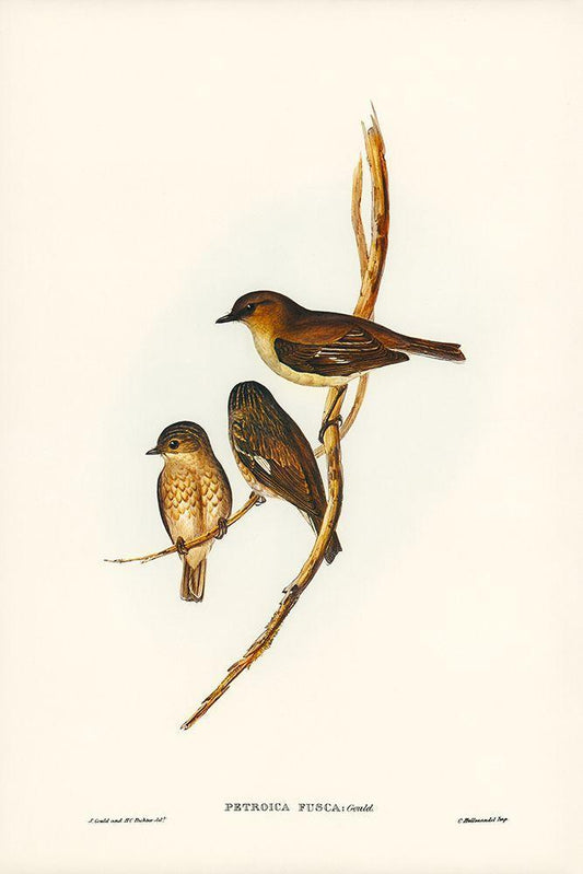 Dusky Robin-Petroica fusca White Modern Wood Framed Art Print with Double Matting by Gould, John
