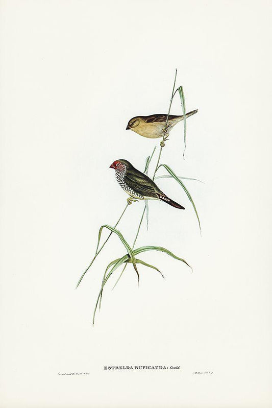 Red-tailed Finch-Estrelda ruficauda White Modern Wood Framed Art Print with Double Matting by Gould, John