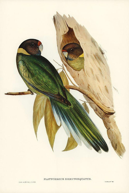 Yellow-collared Parakeet-Platycercus semitorquatus White Modern Wood Framed Art Print with Double Matting by Gould, John