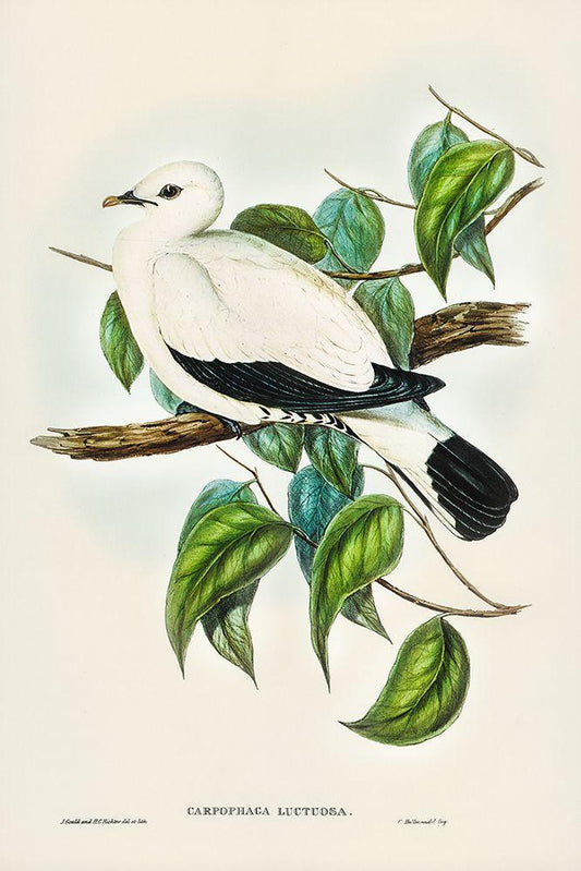 Torres Strait Fruit Pigeon-Carpophaga luctuosa White Modern Wood Framed Art Print with Double Matting by Gould, John
