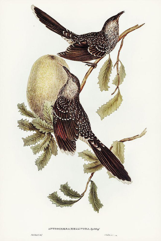 Brush Wattle Bird-Anthochaera mellivora White Modern Wood Framed Art Print with Double Matting by Gould, John