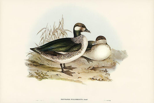 Beautiful Pygmy Goose-Nettapus pulchellus White Modern Wood Framed Art Print with Double Matting by Gould, John